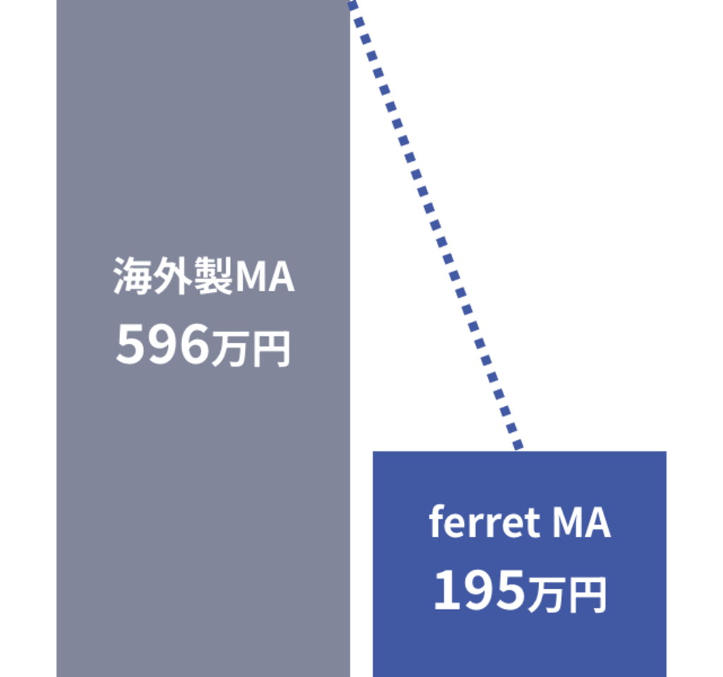 海外製のMAからferret MAに乗り換え、初年度400万円、2年目500万円のツールコストを削減。さらに、内製化による外注コストの削減、業務スピードも向上による人件費の削減も合わせると、トータルコストを大きく抑えることができます。