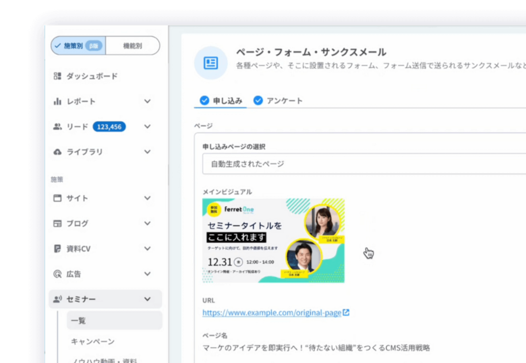 ferret Oneは、CMS・MA・SFA/CRMを統合したマーケ×セールス業務クラウドシリーズです。