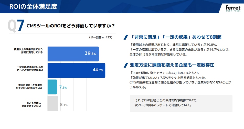 - ROI満足度は8割超。高評価の裏で見えてきた「評価できない」層の課題とは?