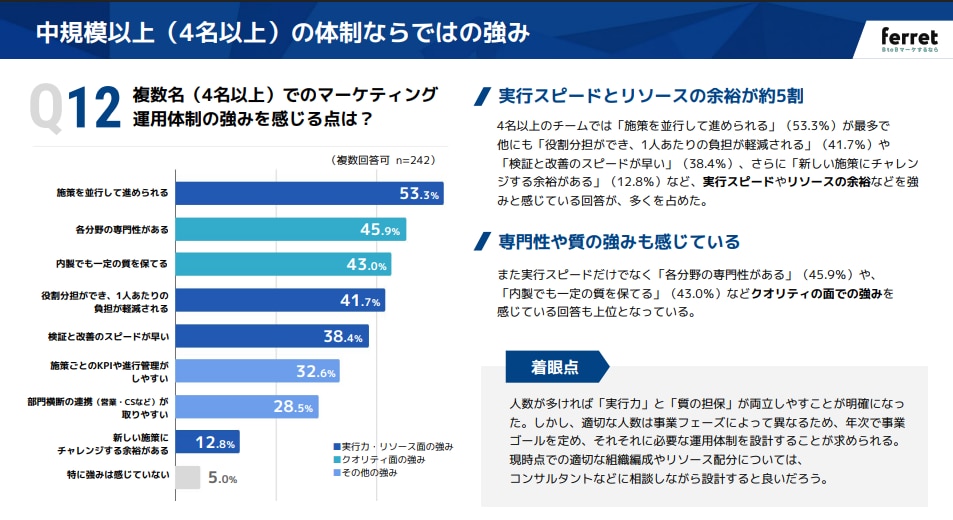 Q. | 複数名(4名以上)でのマーケティング運用体制の強みを感じる点は? |