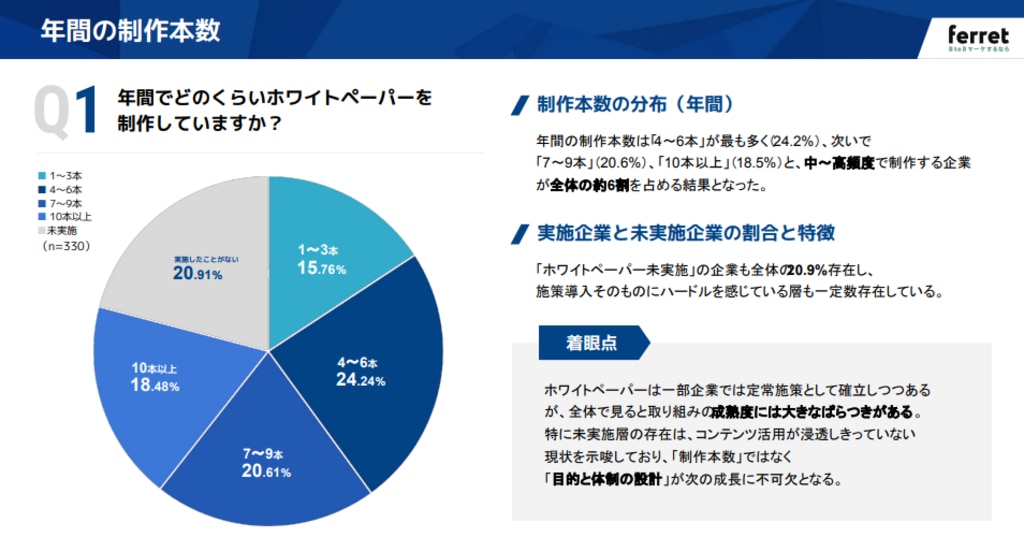 330社の担当者の回答から見えてきた、「制作体制の相場」「ROIの実態」「AI活用のトレンド」など、現場のリアルなデータを基に、貴社のホワイトペーパー施策を成功に導くためのネクストアクションを総括して解説します。