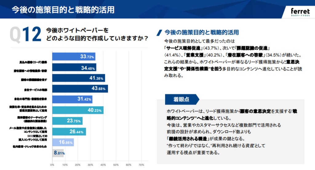 最新の調査では、多くの企業がホワイトペーパーの役割を「集客」から「意思決定の支援」へとシフトさせていることが明らかになりました。