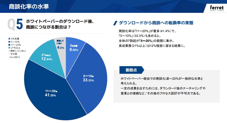 Q. | ホワイトペーパーのダウンロード後、商談につながる割合は? |