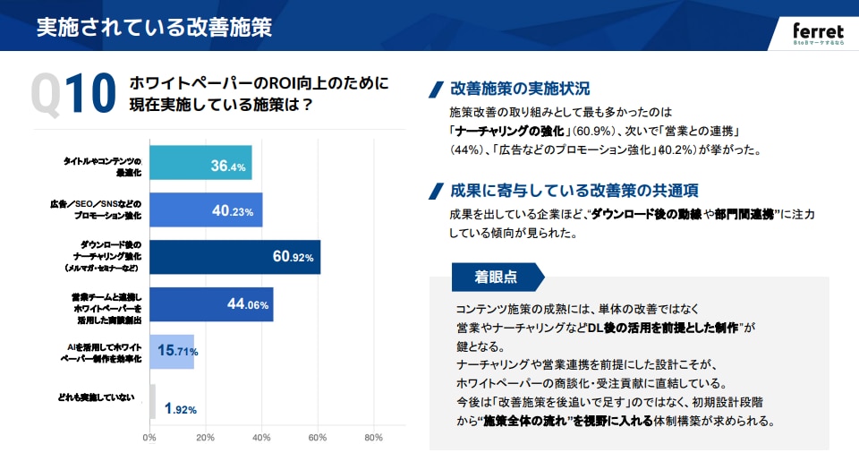 Q. | ホワイトペーパーのROI向上のために実施している施策は? |