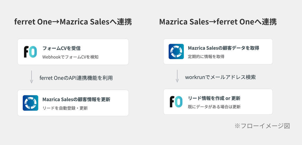 ferret MAとMazricaの連携は、以下の2方向で実現しています。