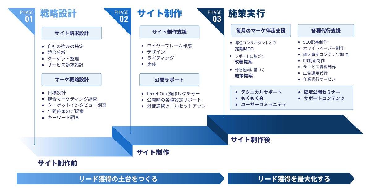 ferret Oneは、まず初めに「誰に・何を・どう伝えれば問い合わせが増えるか」を設計します。