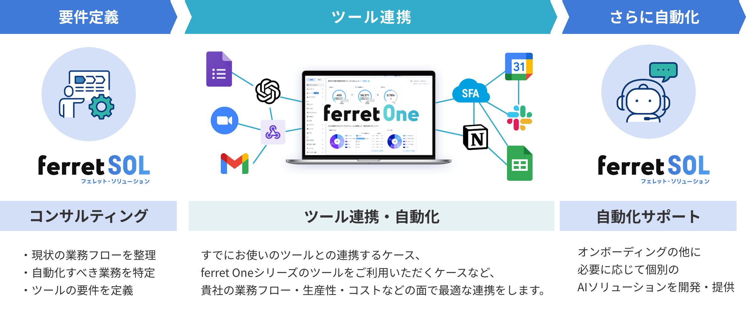 当パックでは、貴社の業務フローを整理し、現在お使いのツールを把握した上で