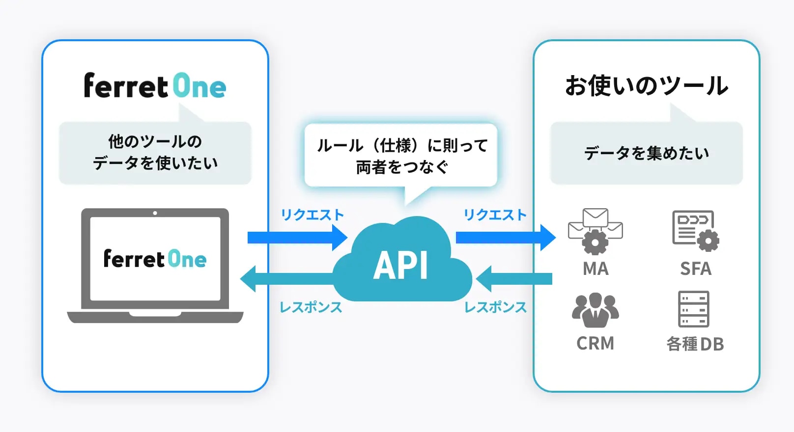 APIでSFA・CRM・各種データベースとの連携も可能です。既にお使いのツールと連携して活用できます。また、ワークフローツールと連携することでデータを統合し、業務を効率化することも可能になります。