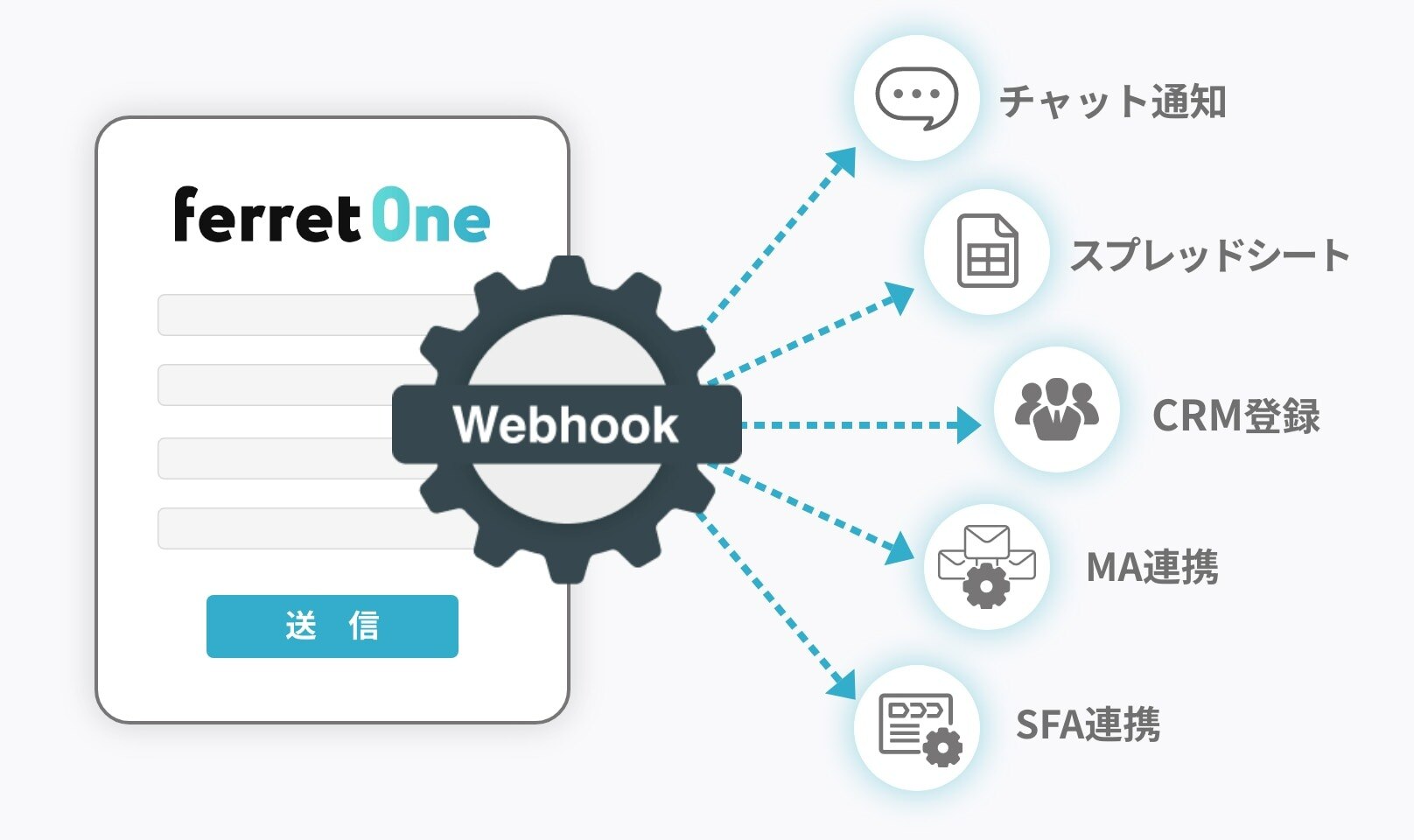 Webhookで特定のアクションを行った時に即座にデータの連携が可能になります。また、ワークフローツールと連携することでデータを統合し、業務を効率化することも可能になります。